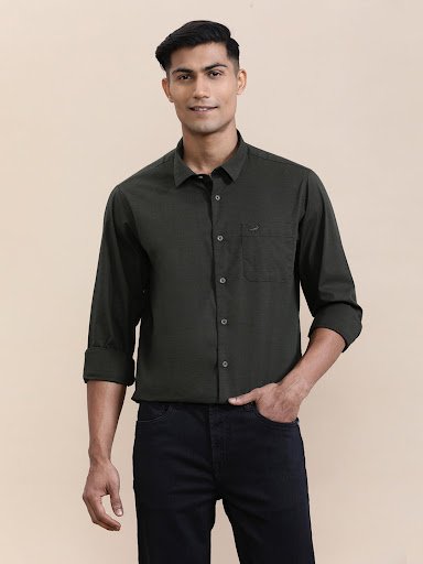 Fabric: Double Pique Fit: Slim Fit Color: Dark Olive Green Pattern: Solid Sleeve...See more