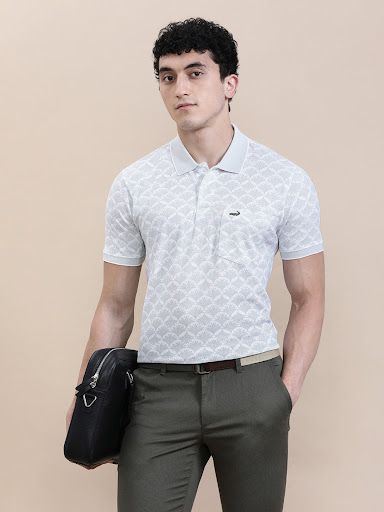 Fabric: Single Pique Fit: Slim Fit Color: Pine Grove Green Pattern: Printed Slee...See more