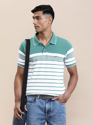 Fabric: Single Pique Fit: Slim Fit Color: Butterfly Green Pattern: Striped Sleev...See more