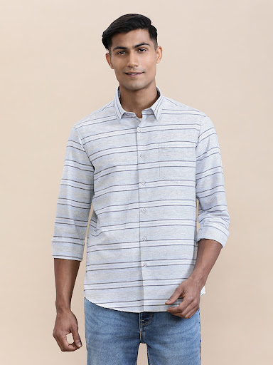 Fabric: 52Cotton/48Poly Fit: Slim Fit Color: Light Blue Pattern: Striped Sleeves...See more